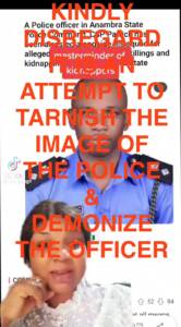 According to the Police Public Relations Officer, Anambra State Police Command, SP Tochukwu Ikenga, the Command categorically states that the video is not only false, mischievous, and malicious, but also a calculated attempt to tarnish the image of the Nigeria Police Force and demonize the said officer.