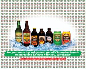 Champion Breweries is a leading regional brewery in Nigeria, renowned for producing quality beverages such as Champion Lager Beer, Champion Lager with Ginger Extract, Champ Malta, Champ Malt with Butter Cookies Flavour and Champ Malt with Tiger Nut. With a legacy rooted in excellence, the brand remains committed to delivering refreshingly unique experiences to its consumers, customers and all stakeholders.