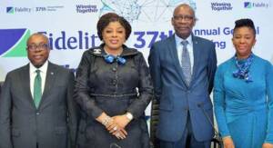 L – R: Executive Director/Chief Operations and Information Officer, Mr. Stanley Amuchie; Managing Director/Chief Executive Officer, Dr. Nneka Onyeali-Ikpe; Chairman, Mr. Mustafa Chike-Obi; and Company Secretary, Mrs. Ezinwa Unuigboje; (all of Fidelity Bank Plc) at the bank’s 37th Annual General Meeting held in Lagos recently.