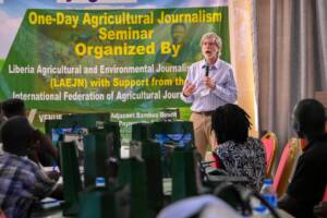 The IFAJ President also participated in a one-day agricultural journalism seminar organized by LAEJN, which brought together journalists, agriculture NGOs, and other stakeholders to discuss the current state of agriculture in Liberia, challenges facing the sector, and growth opportunities.