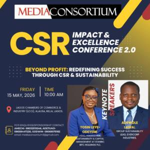 MediaConsortium CSR Impact and Excellence Conference is set to hold on May 15, 2026, at the Lagos Chambers of Commerce and Industry (LCCI), Ikeja, Lagos, with seasoned sustainability professionals, Head of HoldCo Risk, Sustainability & Capital Management at Stanbic IBTC Holdings Plc, Tosin Leye-Odeyemi, and Group Sustainability Lead at EverCorp Industries, Adewole Lawal, delivering the keynote addresses.