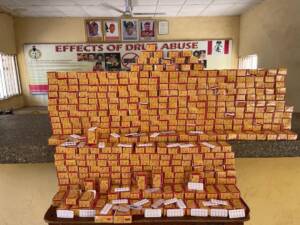 In Lagos, the duo of Olumuyiwa Kolawole and Samod Adisa were nabbed with 67.5kg skunk in Mushin just as 100.8kg of the same psychoactive substance was recovered from the store of two fleeing suspects in the Anifowoshe area of Mushin while Isah Idris was arrested in Apapa with 4.5kg skunk; 600grams of tramadol 225mg and 30litres of codeine syrup on Tuesday 18th March. Another suspect, Yahaya Mohamed, was arrested the same day in the Ikotun area of the state with different quantities of cocaine, heroin, and methamphetamine.