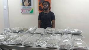 In a similar development, NDLEA officers of the MMIA Strategic Command same day, Thursday 3rd April intercepted a 20-year-old Ghanaian–British man, Parker Darren Hazekia Osei with 36 parcels of Loud, a strong strain of cannabis weighing 19.40kg packed in a giant travelling bag.
