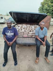 In Bauchi state, NDLEA officers on patrol along Bauchi-Gombe road on Tuesday 6th May intercepted a Toyota Tundra jeep marked RBC 111 DW conveying 526 blocks of skunk weighing 505kg with two suspects: Isaac Onogure, 37 and Ikechukwu Peter, 44, arrested.