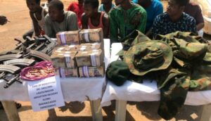 The kidnappers were paraded alongside other suspects at the state Police Command Headquarters Eleyele Ibadan with military camouflage.