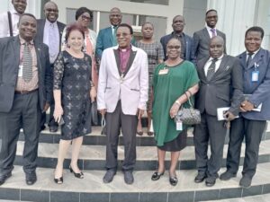 L-R: Bursar, Wesley University Ondo, Mr. Olasoji Kolawole; Vice Chancellor, Afe Babalola University, Ado- Ekiti (ABUAD), Prof. Smaranda Olarinde; Vice Chancellor, Wesley University, Prof. Samuel Sunday Obeka; Registrar, Mrs. Ibijoke Yankey; Dean of law , Prof. Barrister Isaac Oluwatoyin Babatunde; Director of Academic Planning (DAP), Dr. Edward Oyekanmi & ABUAD Management team, during a courtesy visit to Afe Babalola University, Ado- Ekiti by Wesley University Ondo’s team, recent.