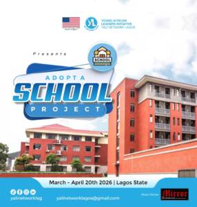 YALI Network Lagos has officially kicked off its first major project of the year, “Adopt a School,” a state-wide initiative designed to promote sustainable educational development and positively impact communities across Lagos State.